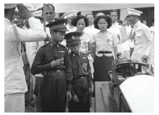กระทั่งวันที่ 15 พฤศจิกายน พ.ศ. 2481 เรือพระที่นั่งได้ทอดสมอ ที่เกาะสีชัง และรัฐบาลได้กราบบังคมทูลเชิญเสด็จฯ ไปยังเรือหลวงศรีอยุธยา ซึ่งรัฐบาลจัดถวายเป็นเรือพระที่นั่ง ในการเสด็จฯ ต่อไปยังปากแม่น้ำเจ้าพระยา จังหวัดสมุทรปราการ เพื่อทรงนมัสการพระสมุทรเจดีย์ และสมเด็จพระศรีสวริน- ทิราบรมราชเทวี พระพันวัสสาอัยยิกาเจ้า ได้เสด็จฯ มาทรงรับพระราชนัดดา และพระสุนิสาด้วย โดยระหว่างทางนั้น พสกนิกรได้รอเฝ้าชื่นชมพระบารมีอยู่ โดยตลอดสองฝั ่งแม่น้ำ