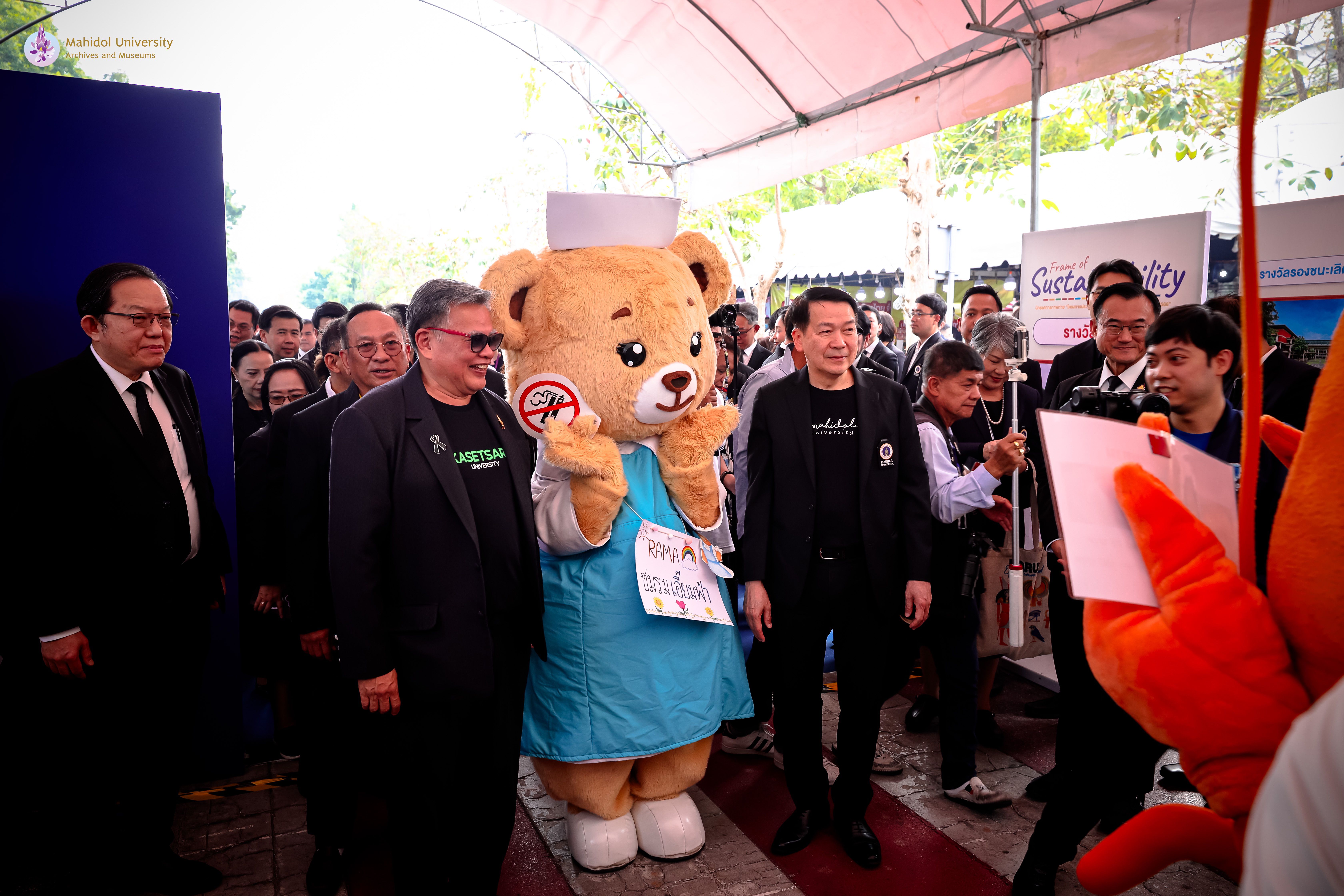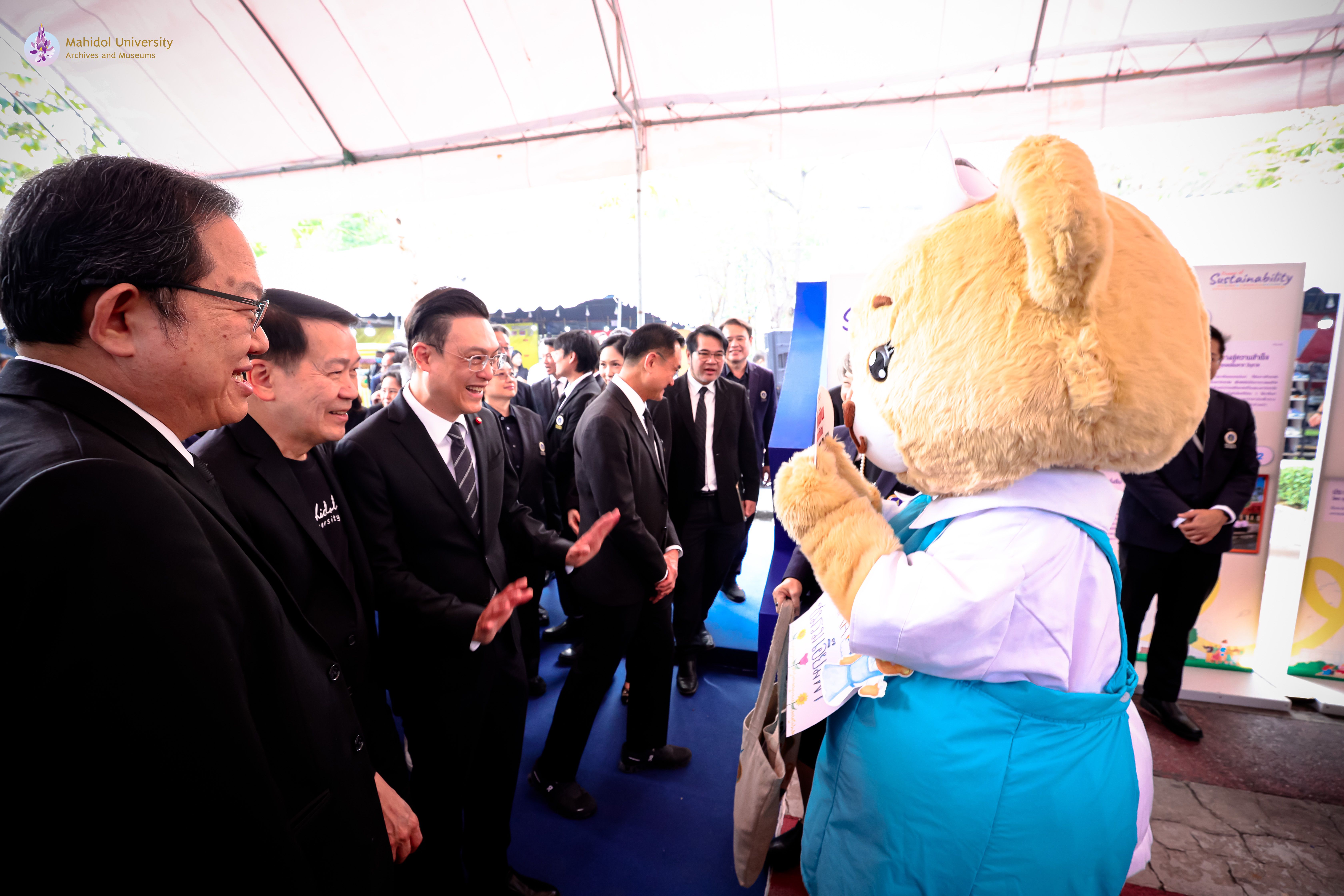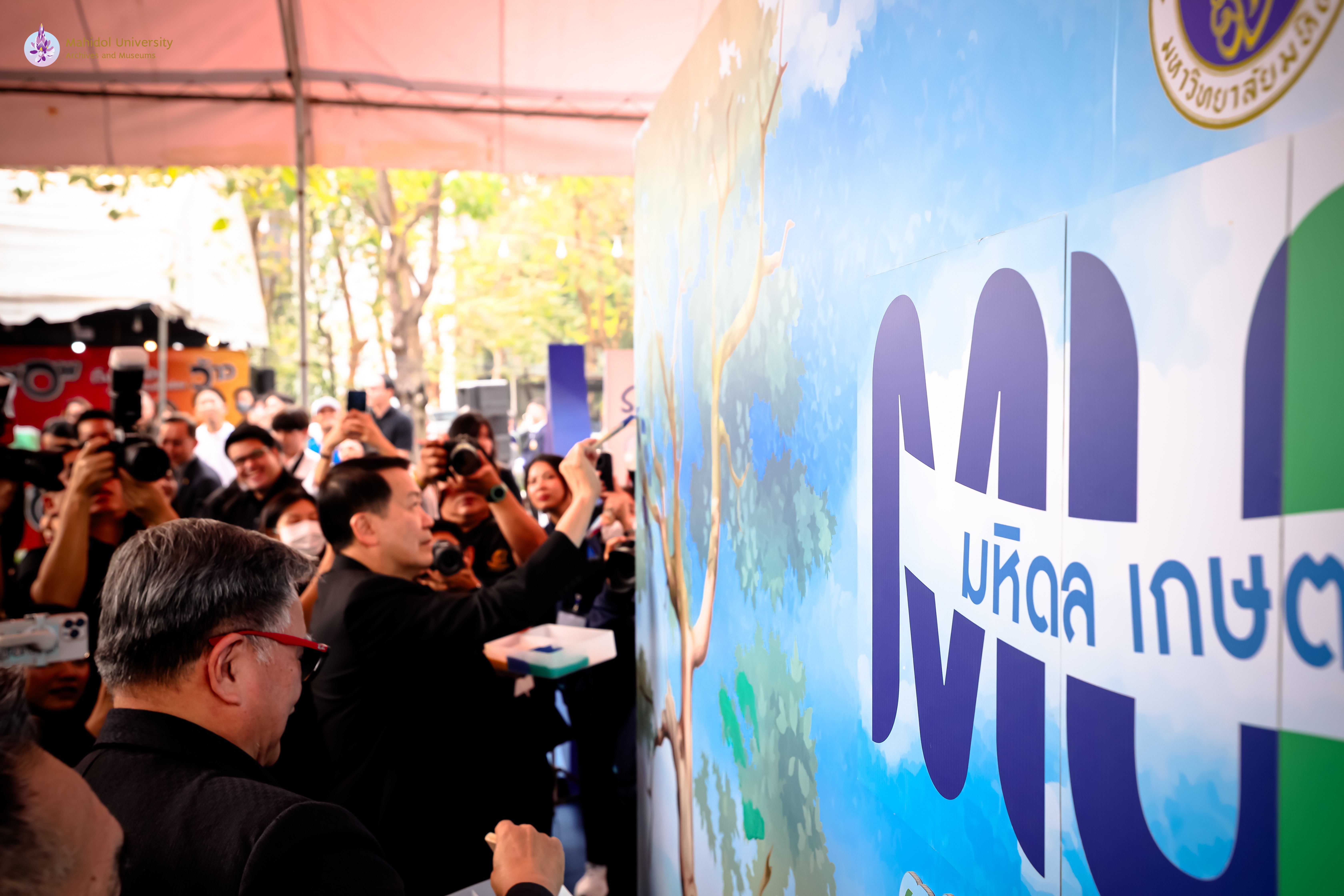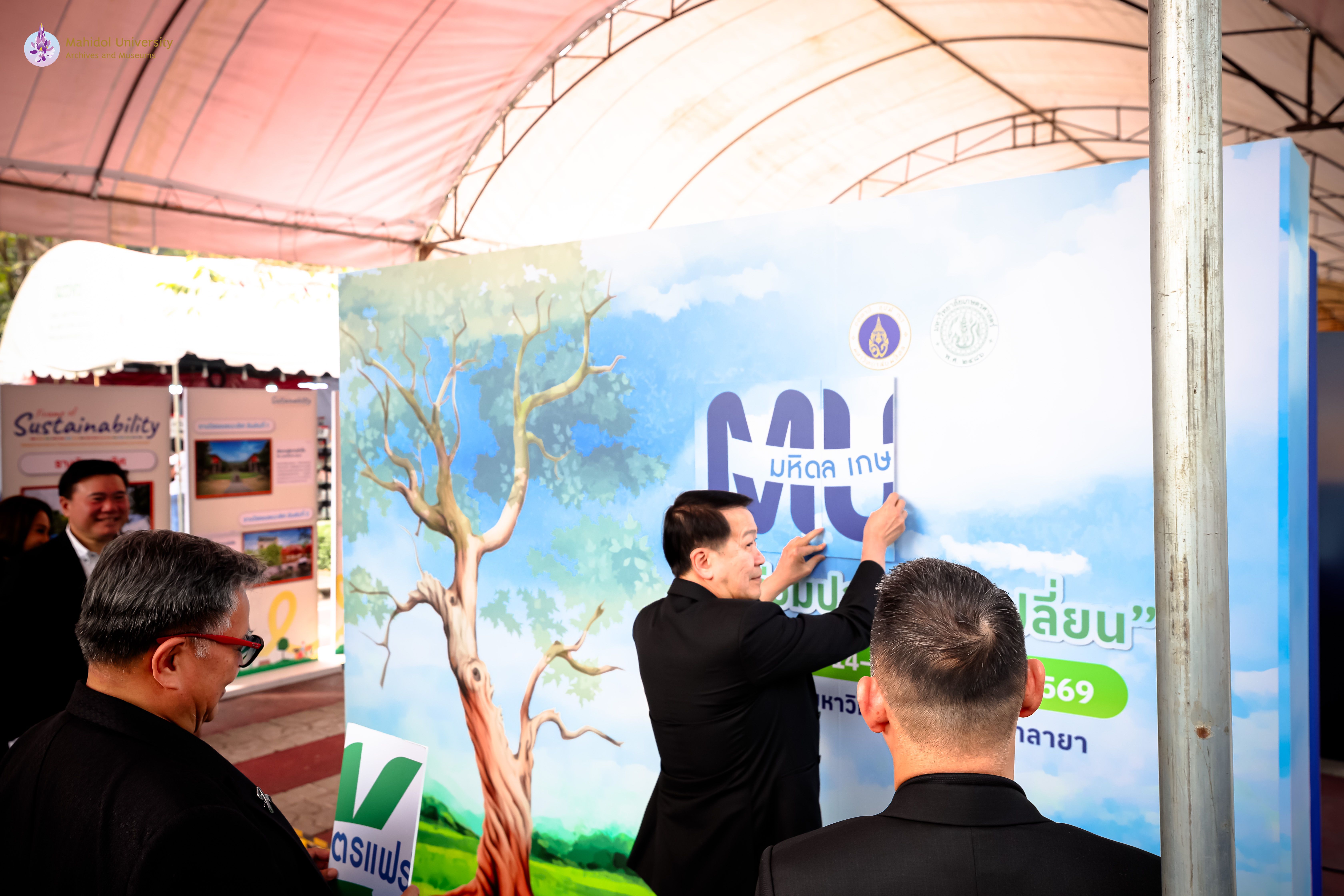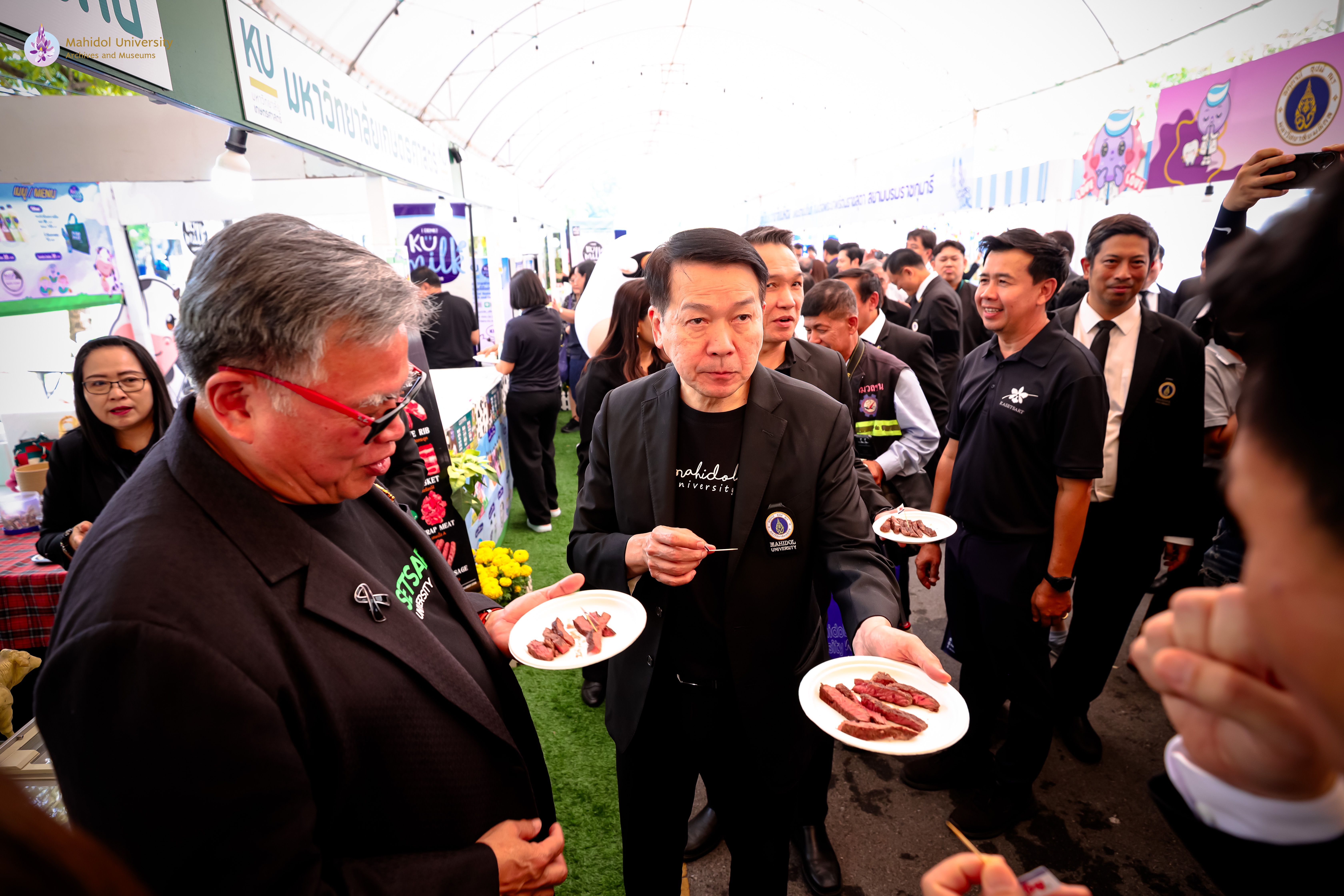 ภาพบรรยากาศพิธีเปิดงาน “มหิดล เกษตรแฟร์ 2569” ภายใต้แนวคิด “ร่วมปลูก ร่วมเปลี่ยน” ความร่วมมือระหว่างมหาวิทยาลัยมหิดลและมหาวิทยาลัยเกษตรศาสตร์ เพื่อส่งเสริมองค์ความรู้ด้านการเกษตร นวัตกรรม และการพัฒนาอย่างยั่งยืน โดยได้รับเกียรติจาก ศาสตราจารย์ นายแพทย์ปิยะมิตร ศรีธรา อธิการบดีมหาวิทยาลัยมหิดล และ ดร. ดำรงค์ ศรีพระราม อธิการบดีมหาวิทยาลัยเกษตรศาสตร์ ร่วมเป็นประธานในพิธี