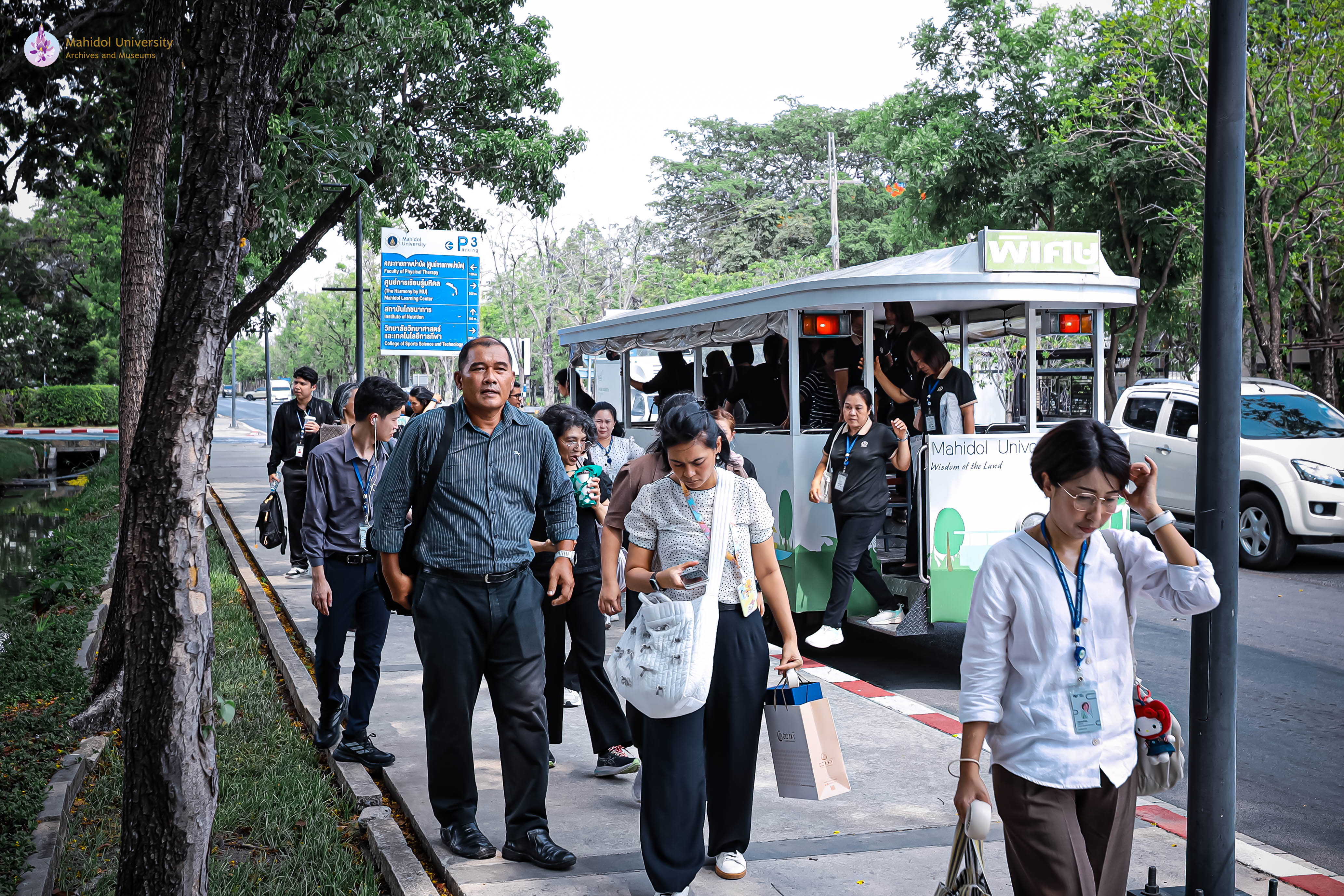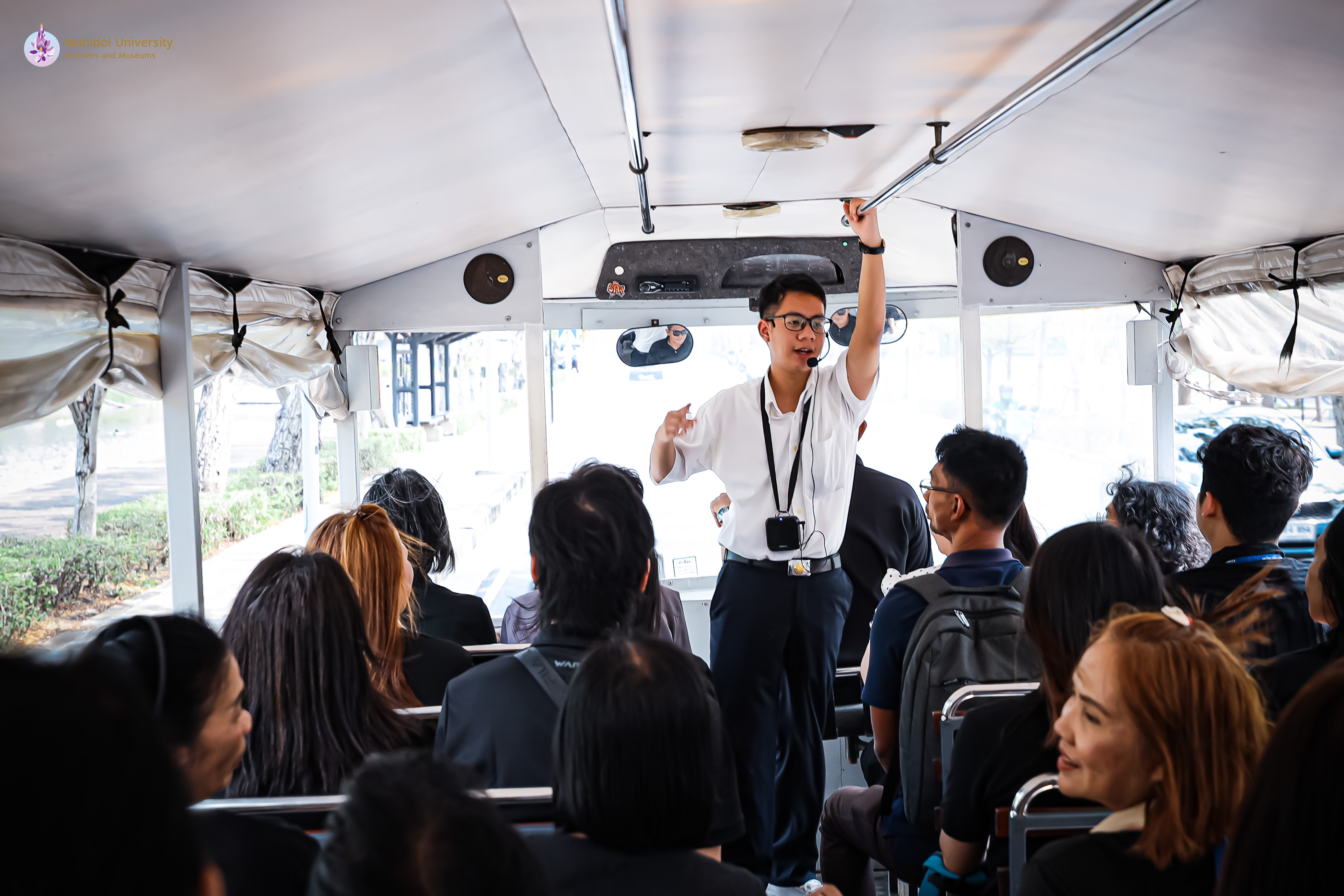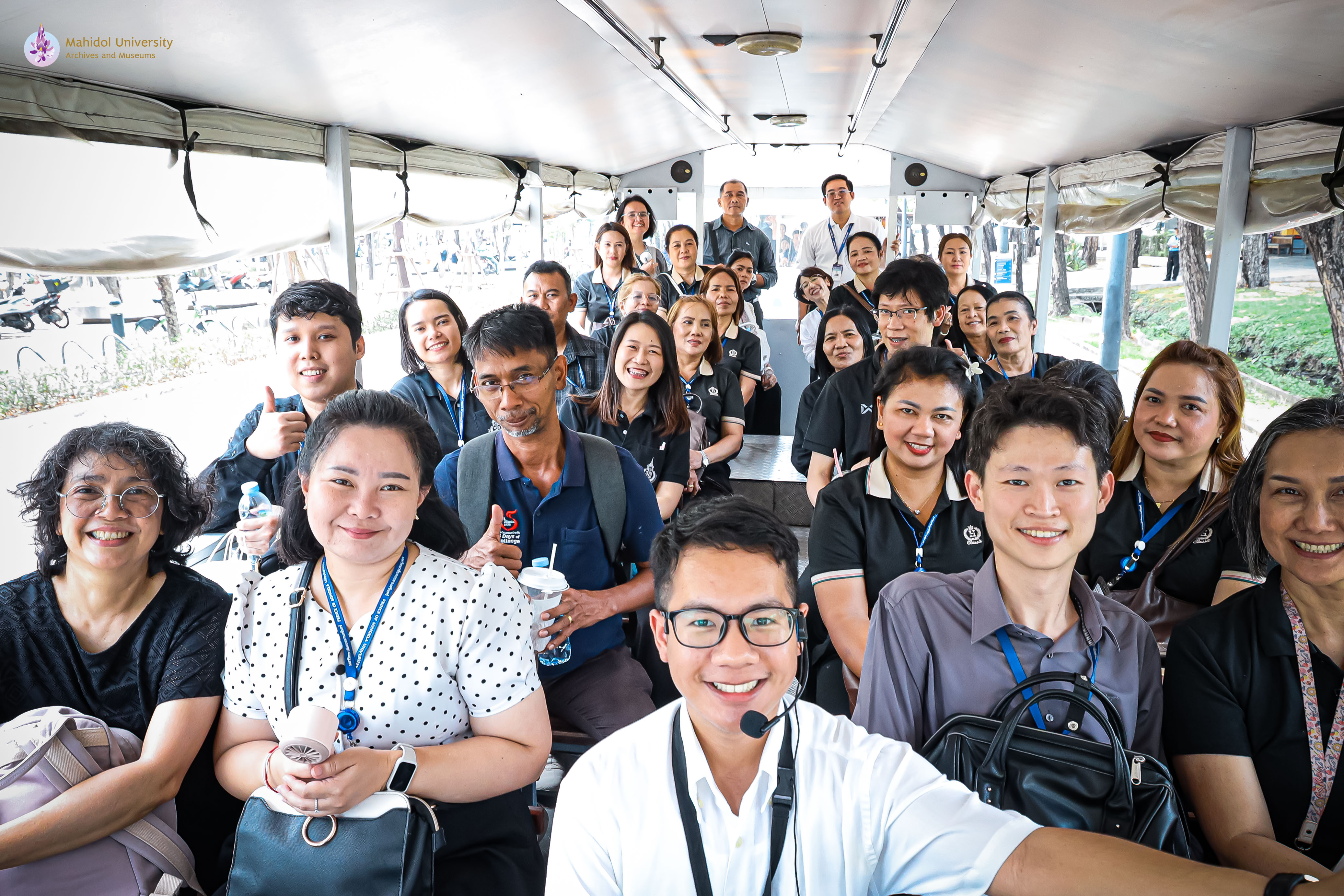 Friday, 24 April 2026, The Archives and Museums Department welcomed executives and administrative staff from the Faculty of Liberal Arts, Prince of Songkla University. The group enjoyed a tram-based Campus Tour, exploring the campus atmosphere and key landmarks of Mahidol University.
